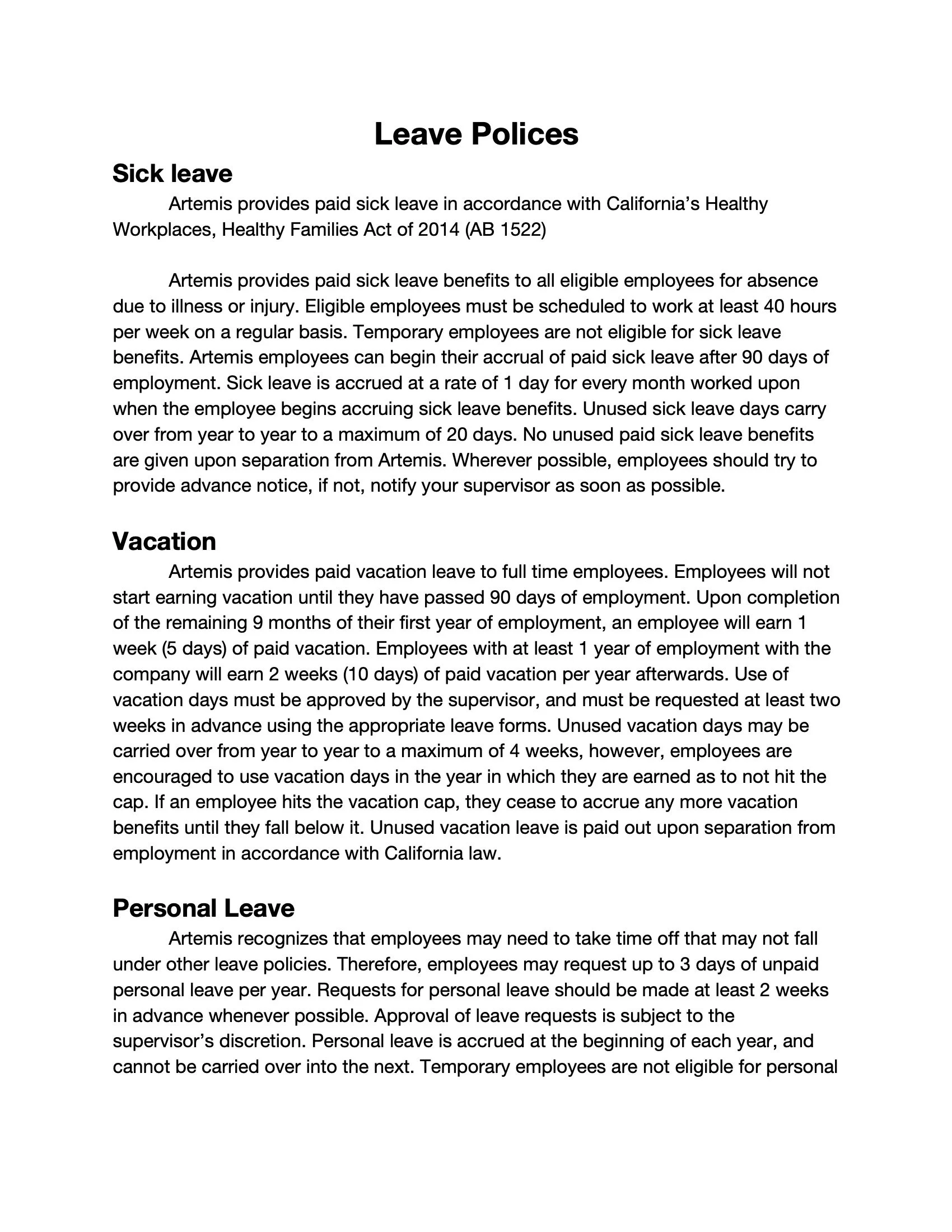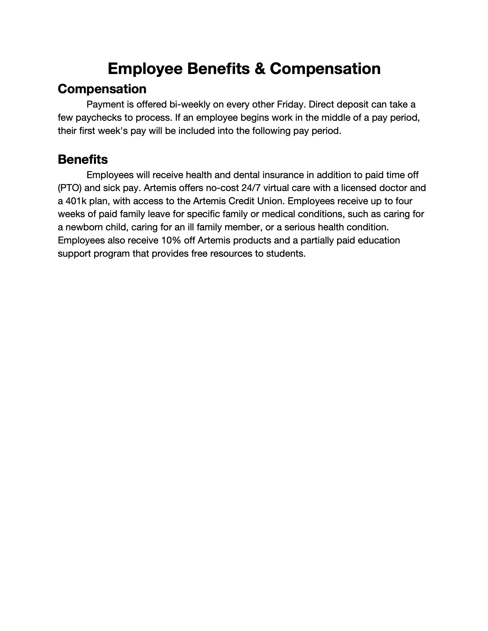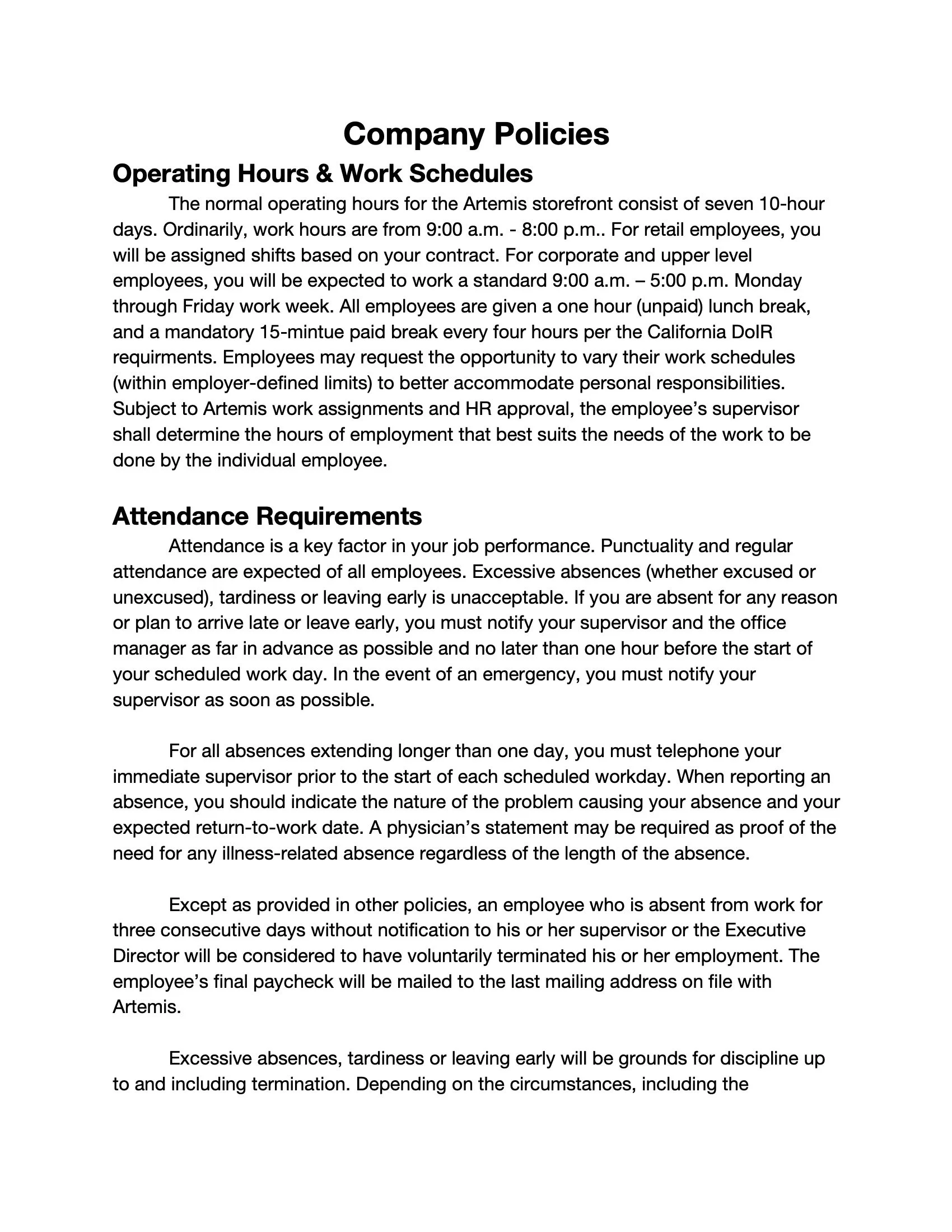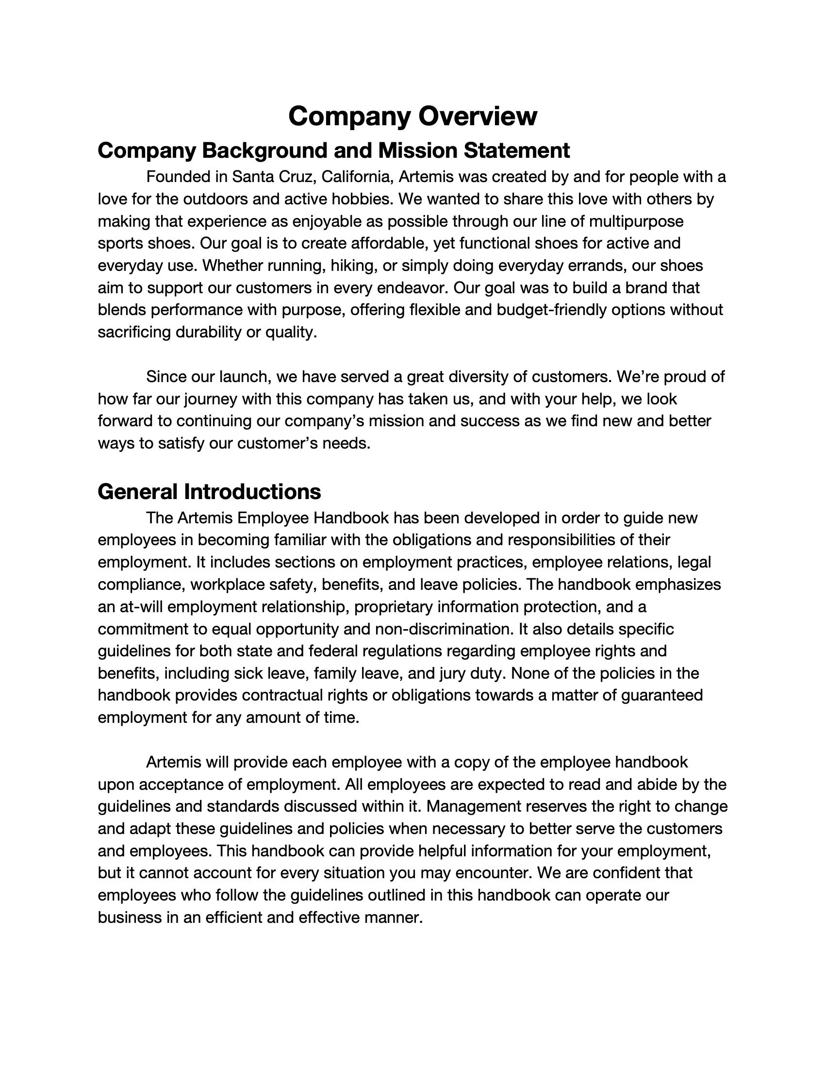 Business Writing: Employee Handbook Assignment
