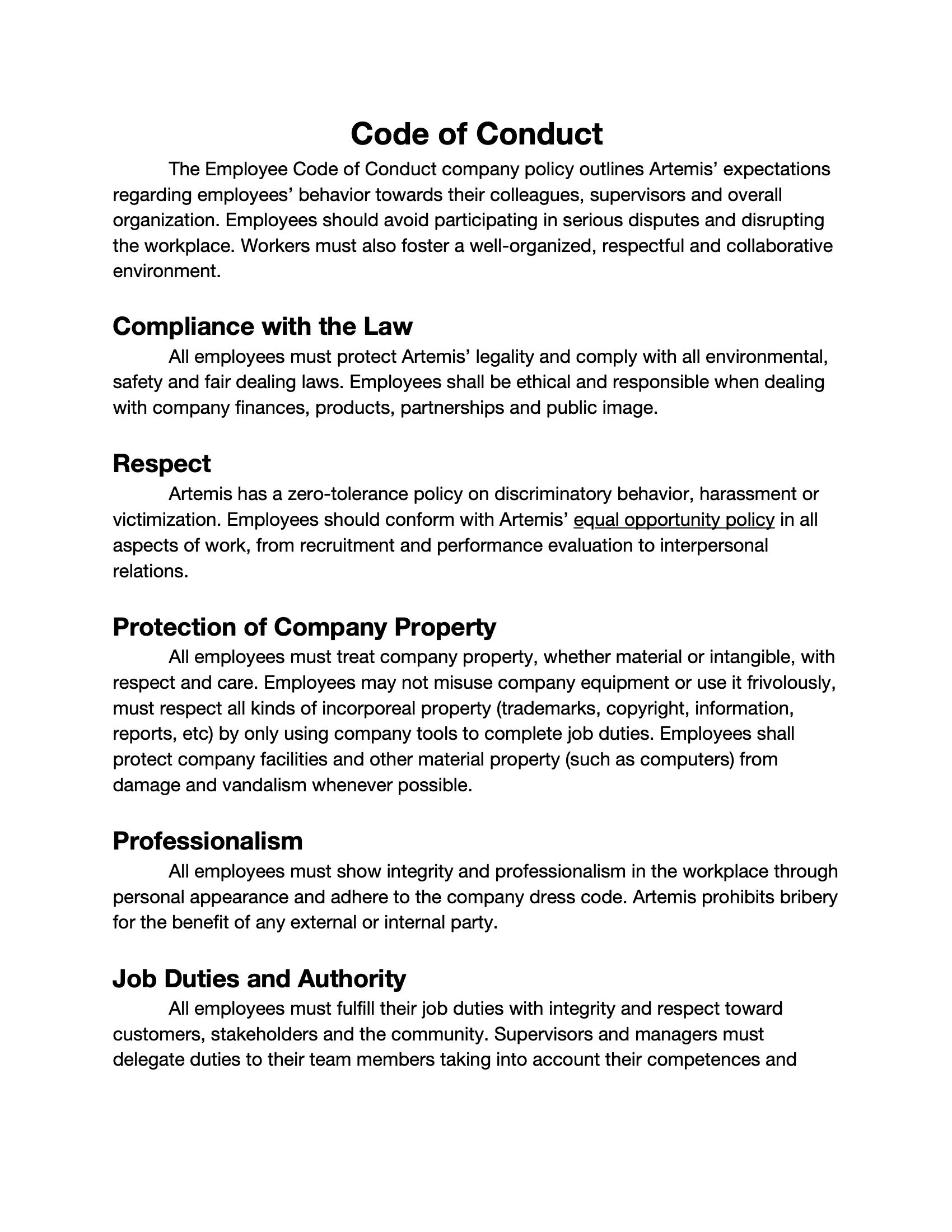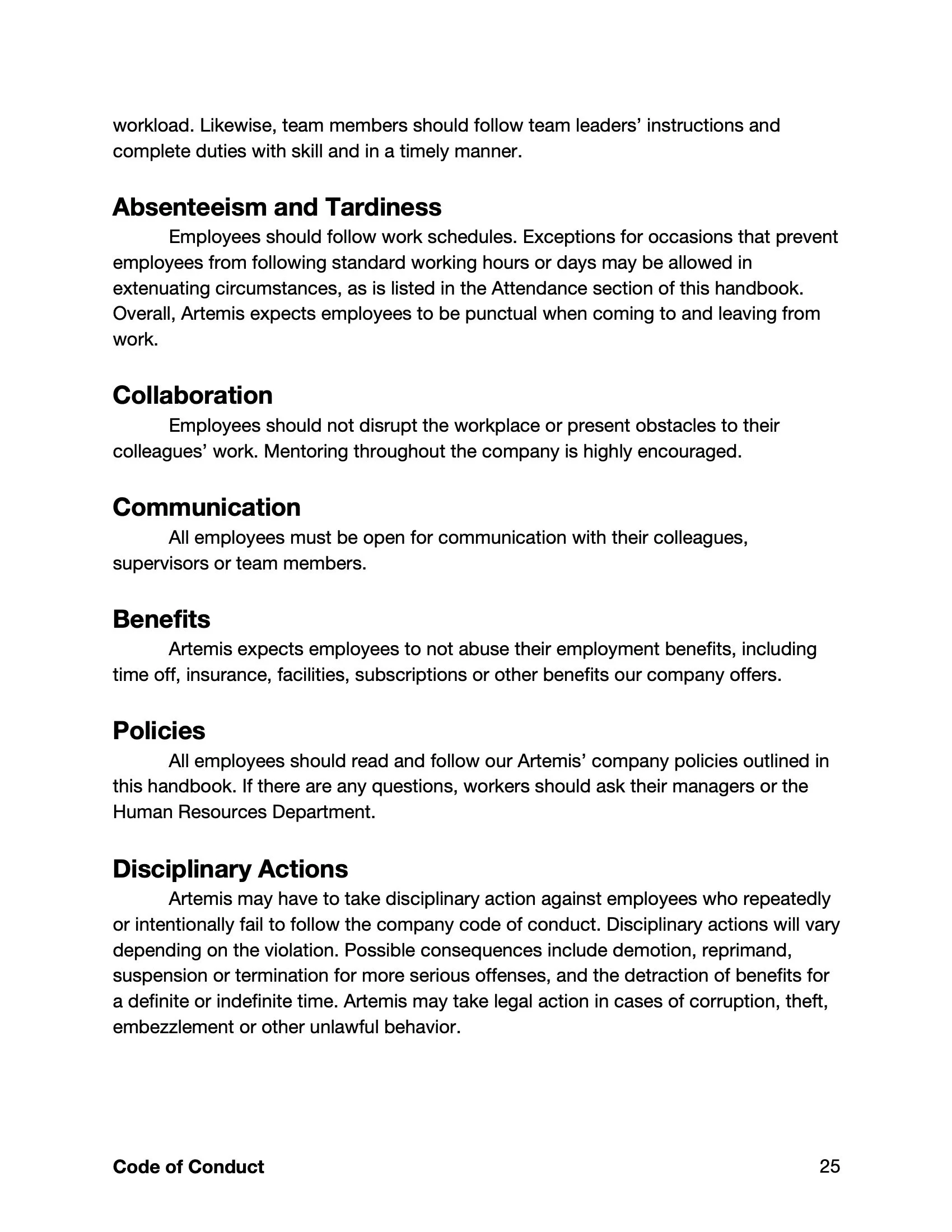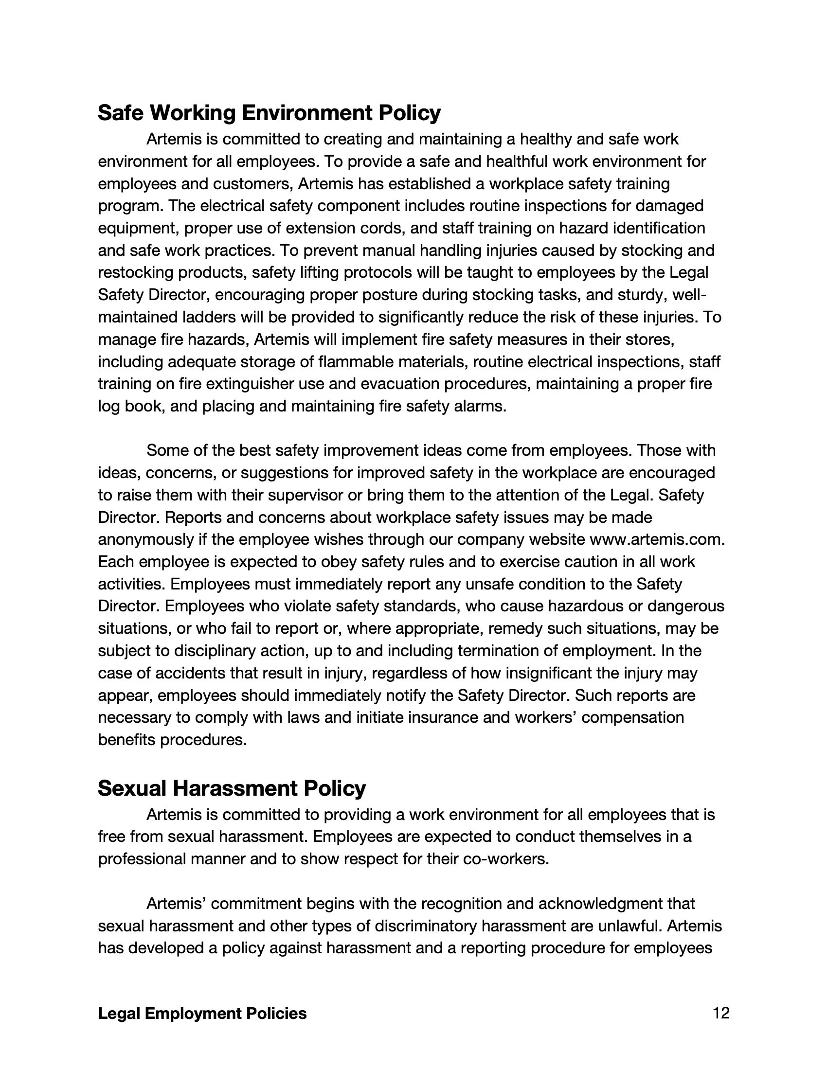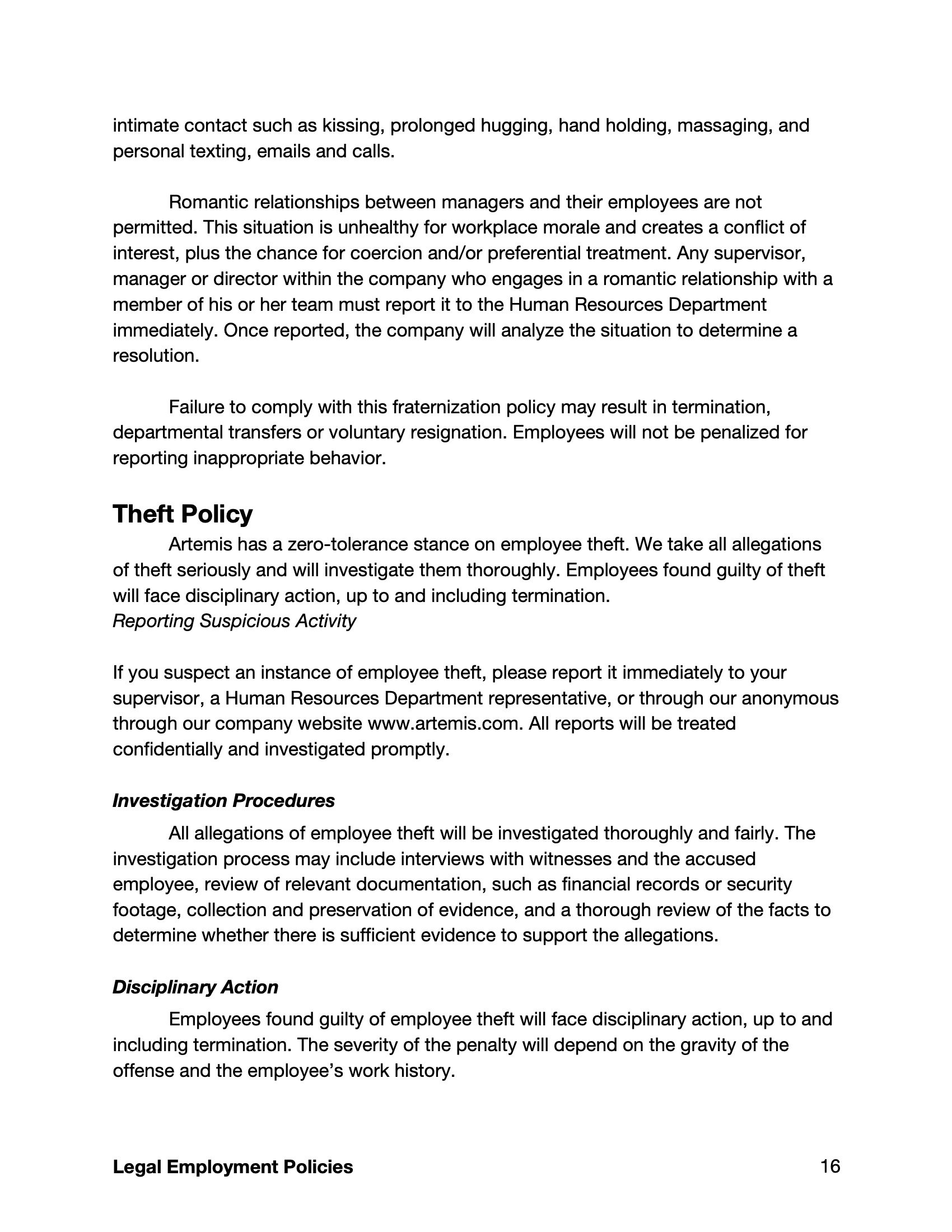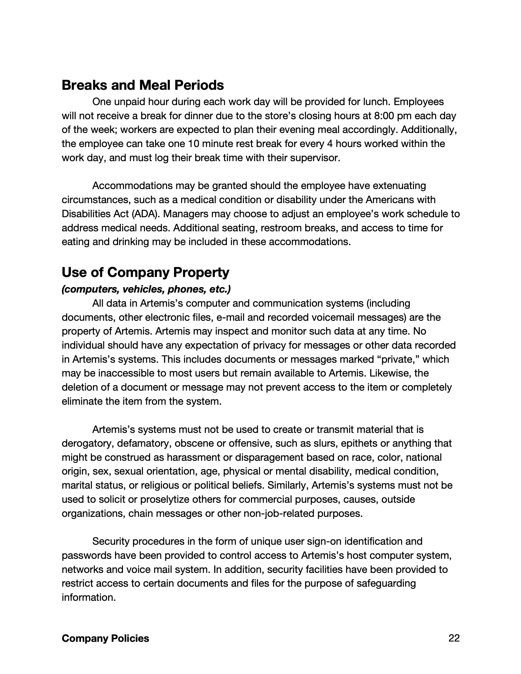 Business Writing: Employee Handbook Assignment